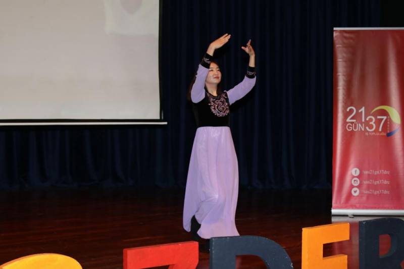 Etkinlikte yerel kıyafetlerini giyen Kırgızistan, Endonezya ve Abhazya uyruklu öğrenciler, danslarıyla izleyenlere keyifli dakikalar yaşattı. Geleneksel şarkı ve şiirlerin de yer aldığı gösterinin devamında, öğrenciler davetlilere kendi ülkelerine ait geleneksel yemekler ikram ettiler.